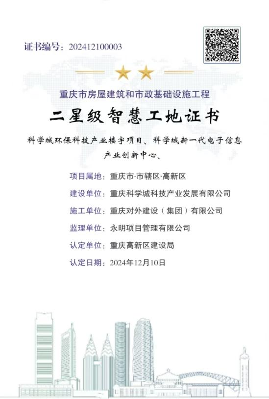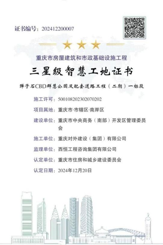 ¿ËÈÕ£¬ÖØÇì¶ÔDBÕæÈËÆì½¢É輯Íųн¨µÄµ¯×ÓʯCBDȺ»Û¹«Ô°¼°ÅäÌ×õè¾¶¹¤³Ì£¨¶þÆÚ£©Ò»±ê¶Î¹¤³Ì»ñ“ÈýÐǼ¶Öǻ۹¤µØ”¡¢“ÐÞ½¨Ê©¹¤Ñï³¾¿ØÖÆÊ÷Ä£¹¤µØ”³Æºô£»¿ÆÑ§³Ç»·±£¿Æ¼¼¹¤ÒµÂ¥ÓîÏîÄ¿¡¢¿ÆÑ§³ÇÐÂÒ»´úµç×ÓÐÅÏ¢¹¤ÒµÁ¢ÒìÖÐÐÄÏîÄ¿»ñ“¶þÐǼ¶Öǻ۹¤µØ”³Æºô¡£